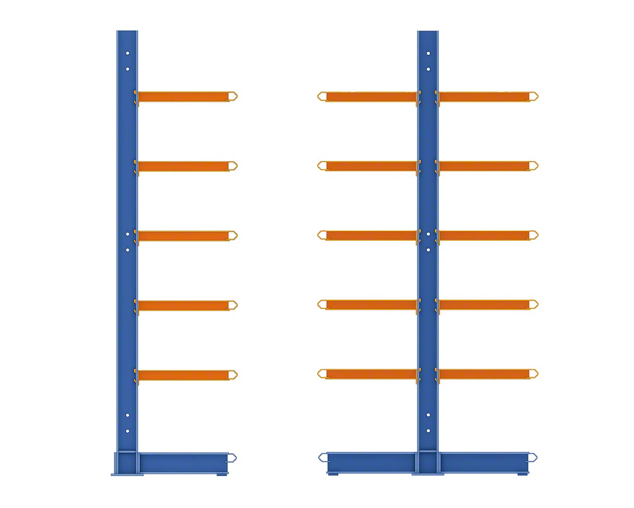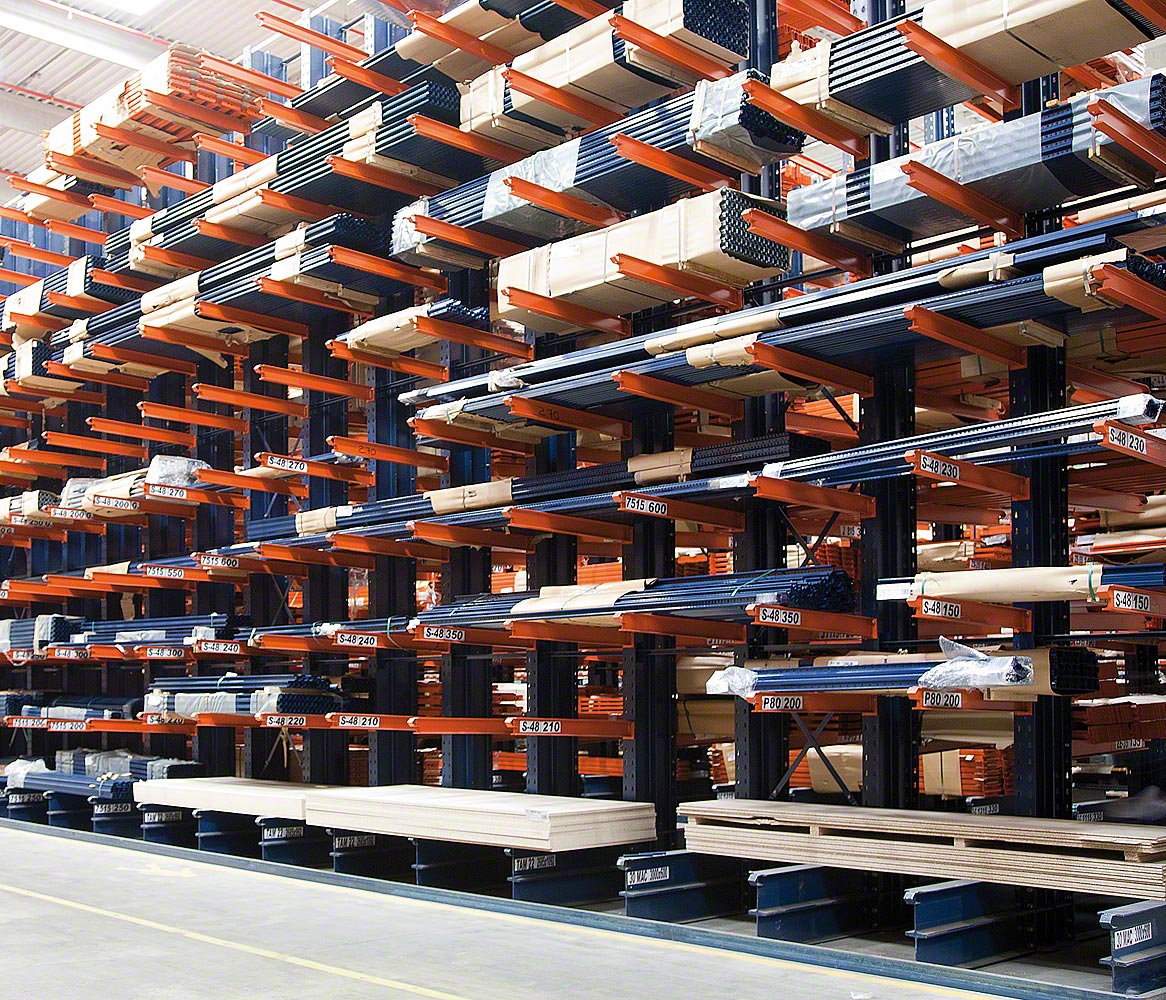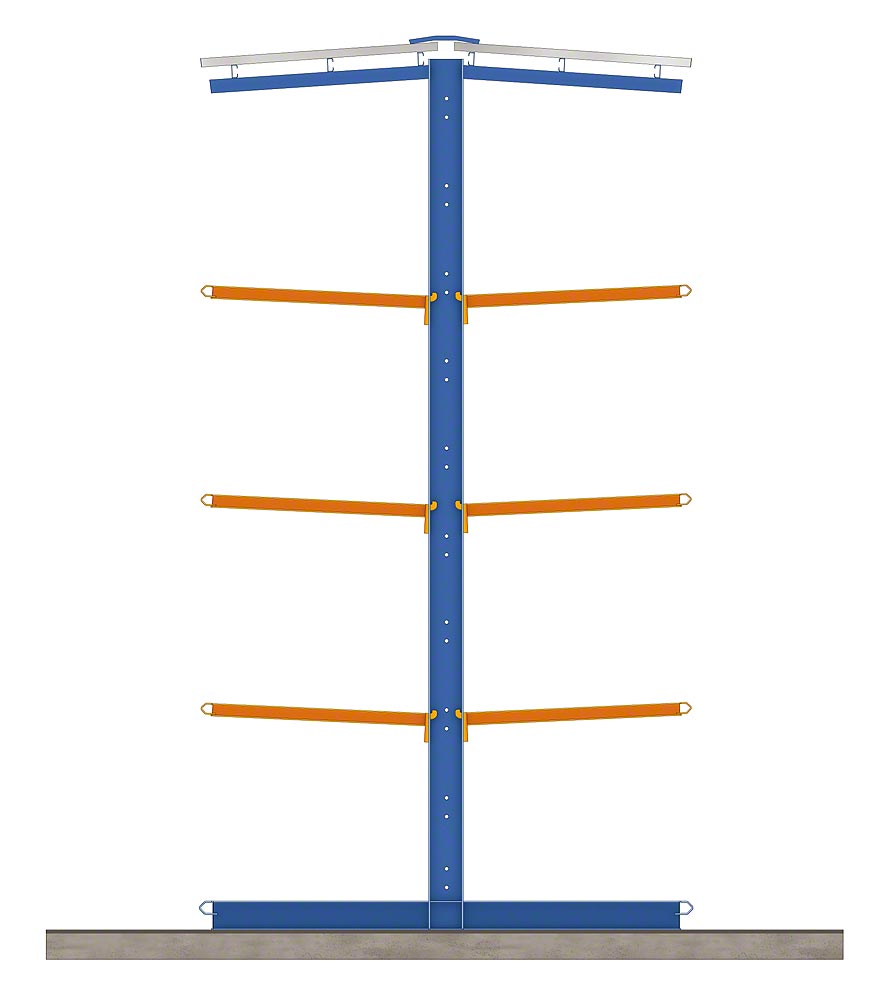 由装载货架上一系列向外伸出的悬臂和柱子所组成。这些柱子是由热层压的金属框条所制成,具有各种不同高度,可以简单方式调整层架的刻度。此外,此结构允许依据需求将货物放置在一侧或两侧。