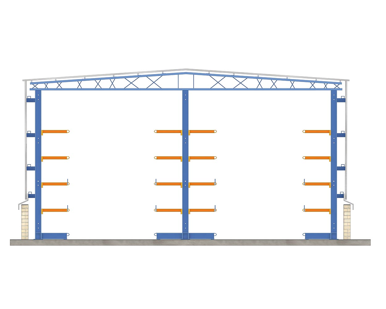 适合承载棒状、框架、管材、木材或超长型和高重量的货物。此货架有利于使用通过起重元件进行货物处理,如桥式起重机、码垛机、起重叉车等,而选择用于存放的货物主要依据其重量、尺寸或货架本身的高度。