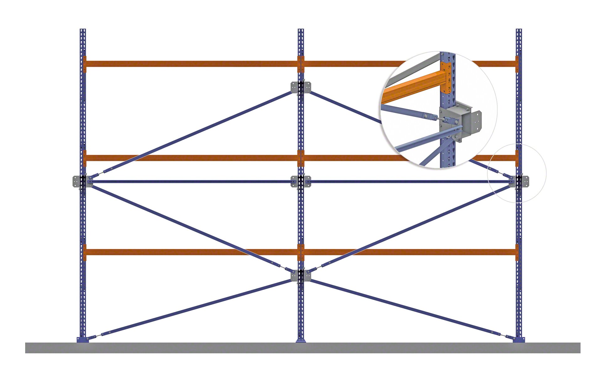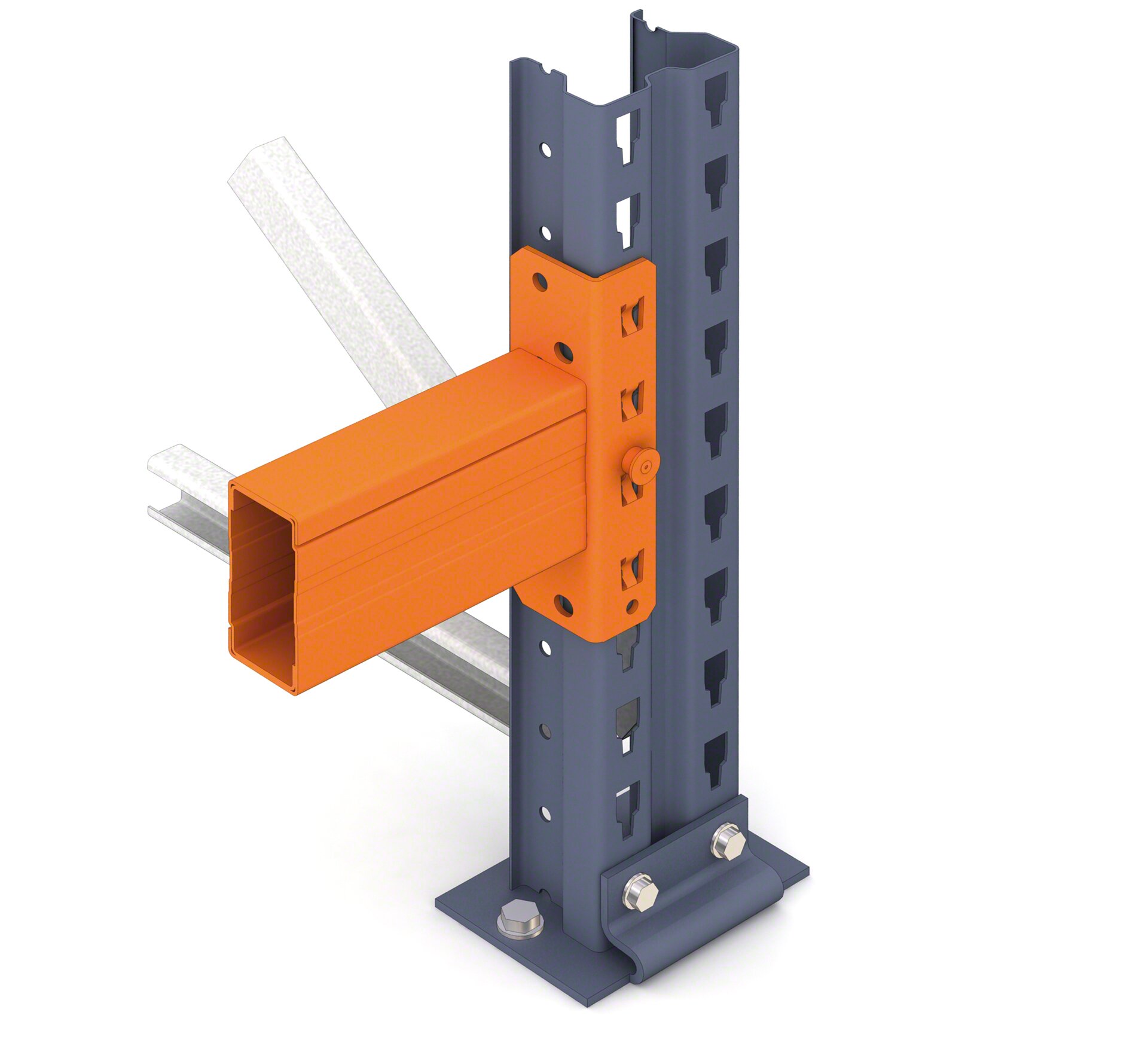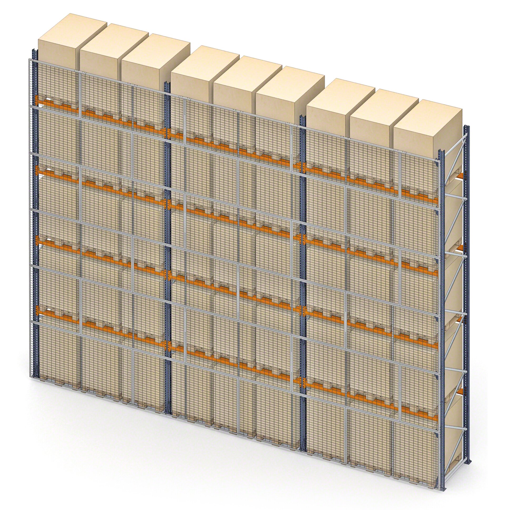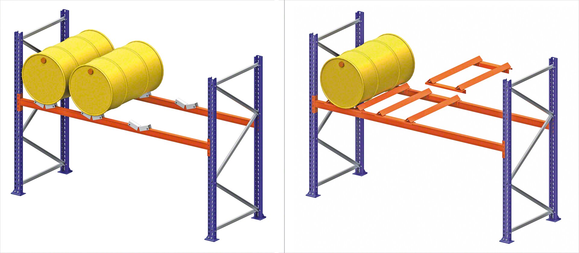 为了存储更多数量的托盘,可安装双底座的货架,在通道的两边托盘前在置放另一个托盘。