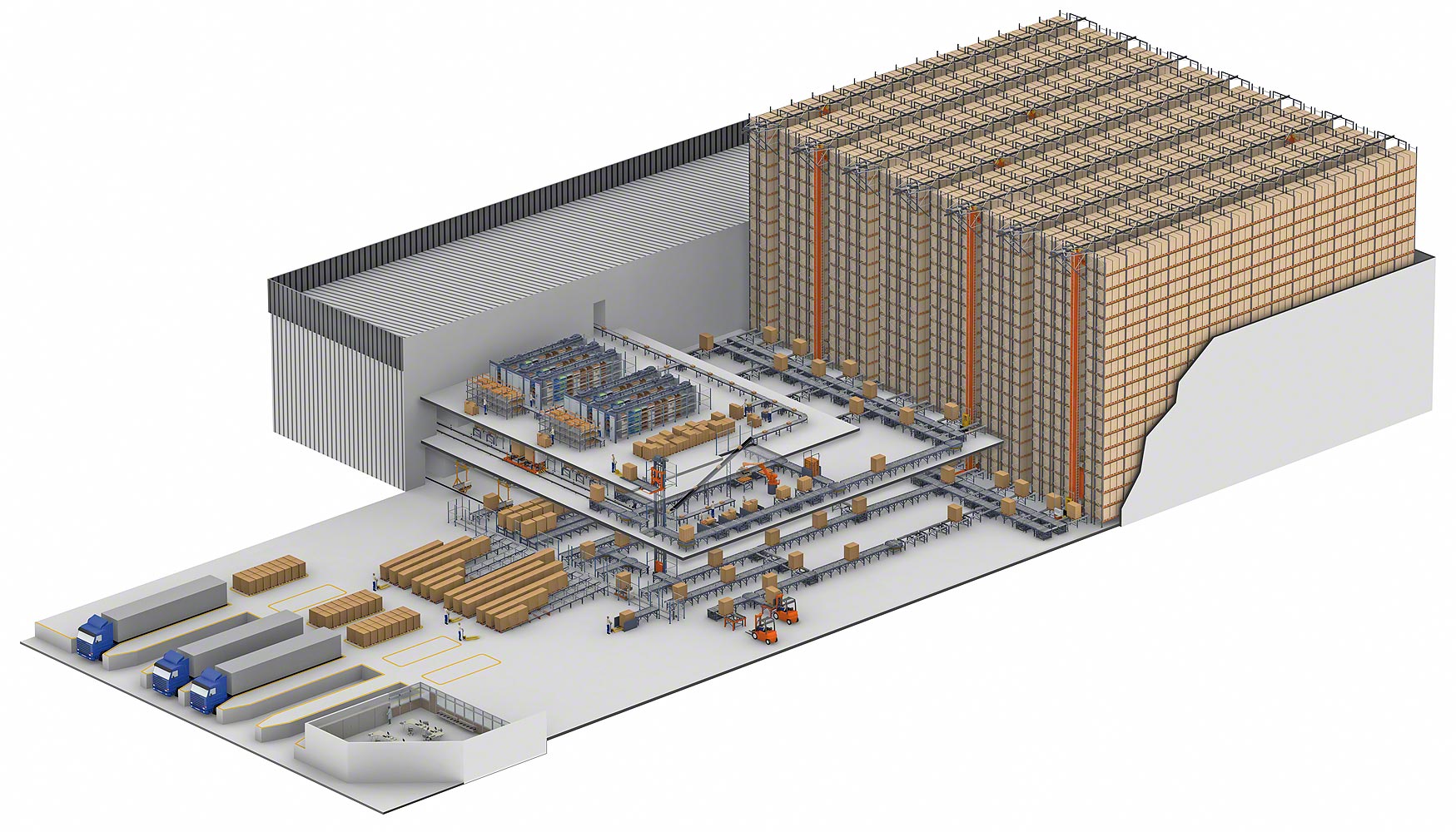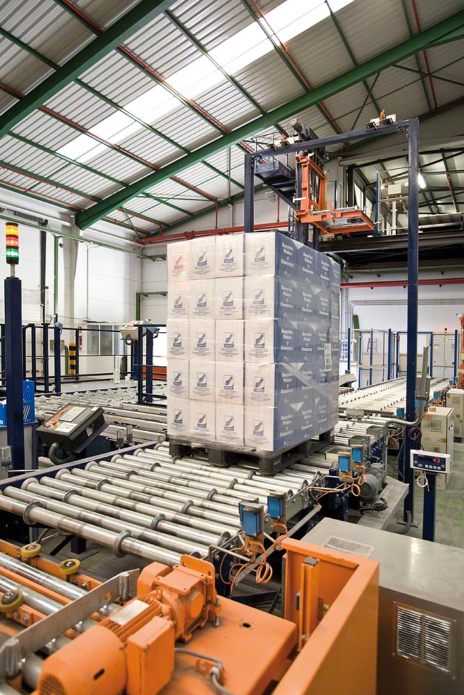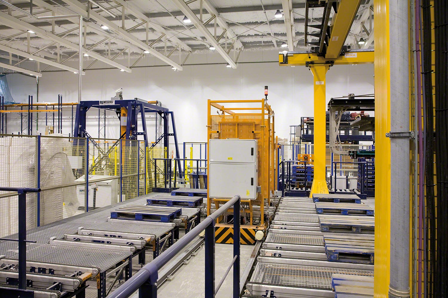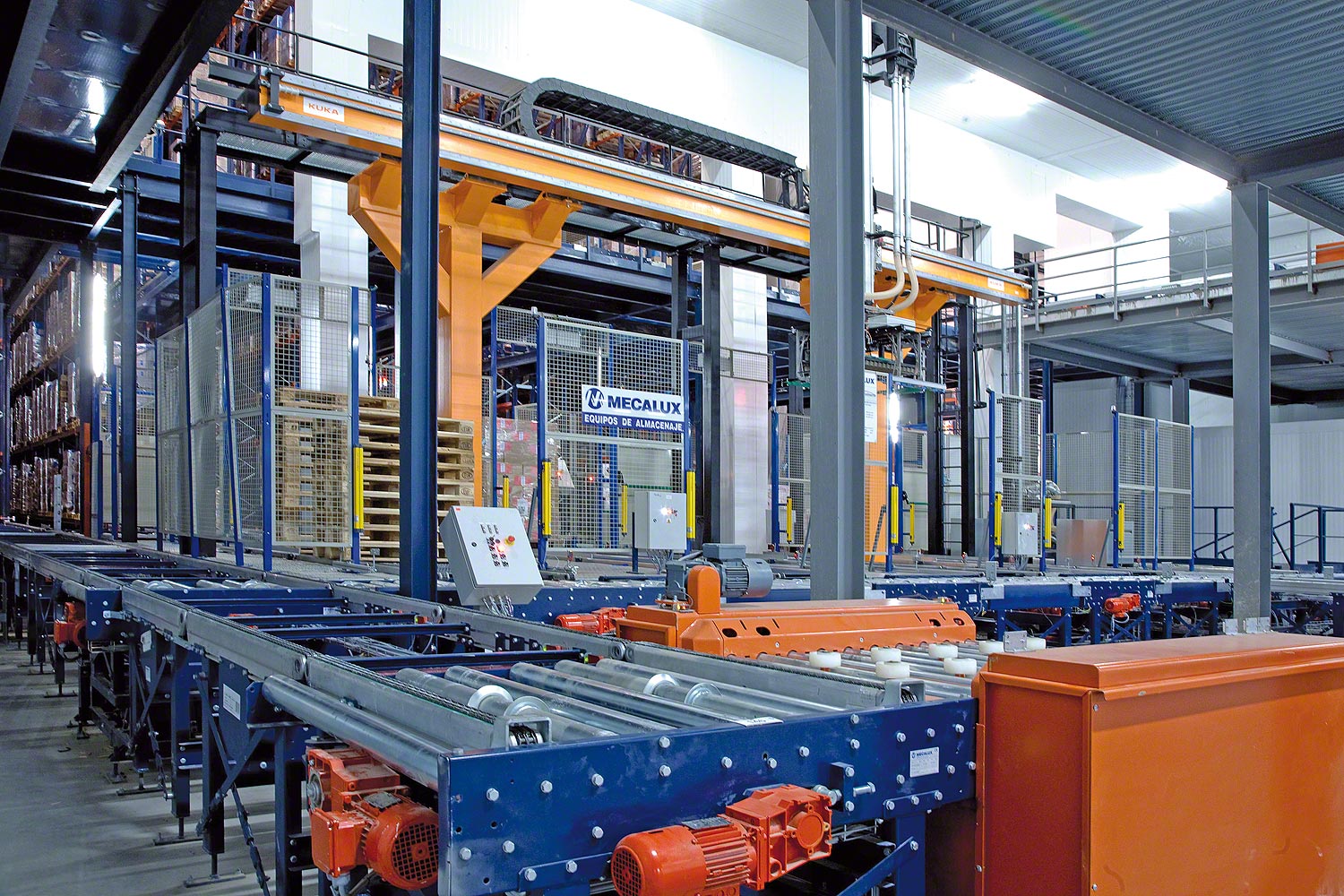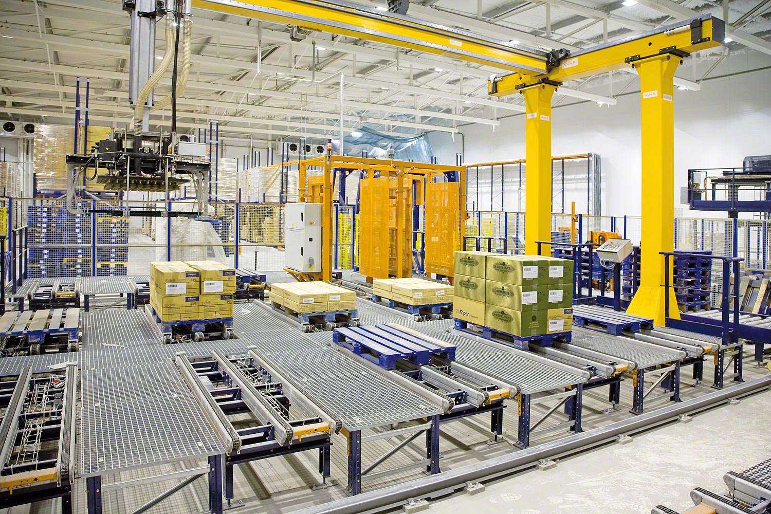 结合作为货物运输、存储和/或销售的元件,直到物流运作抵达预计的特定位置。此运输系统追求码垛机效率以及入库、出库和装载单位处理流程之间的理想组合。