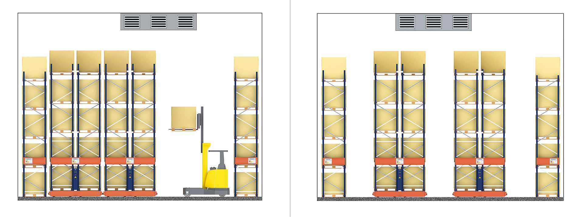 最大限度地利用空间。冷藏库或冷冻库的优化系统。消除个别进入的通道。